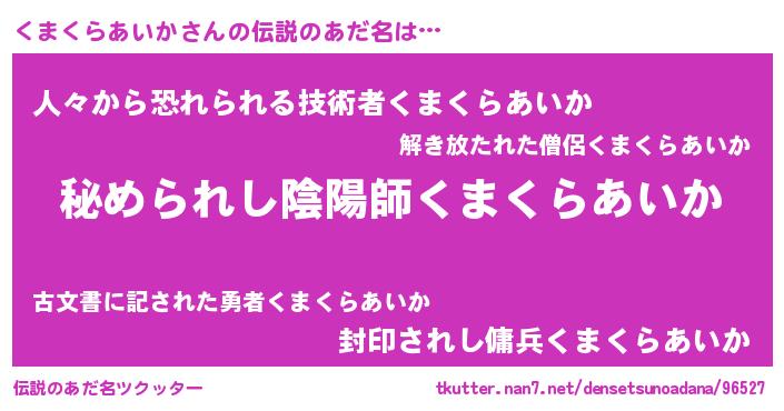 | ファンタジー風あだ名 | 『エターナルクマクラアイカー』 |