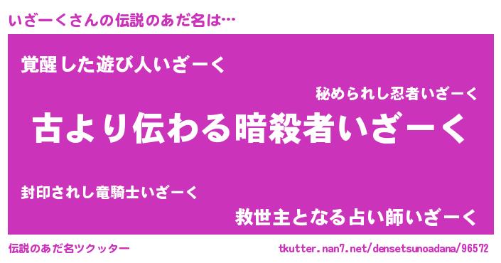 | 男性向けラノベタイトル風あだ名 | 『魔弾の王といざーく』 |