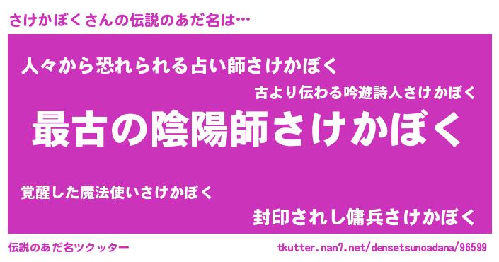 | ファンタジー風あだ名 | 『エターナルサケカボクー』『ゼサケトゥ』 |