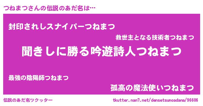 | 意味不明あだ名 | 『永久保存つねまつ』『自称つねまつ』 |