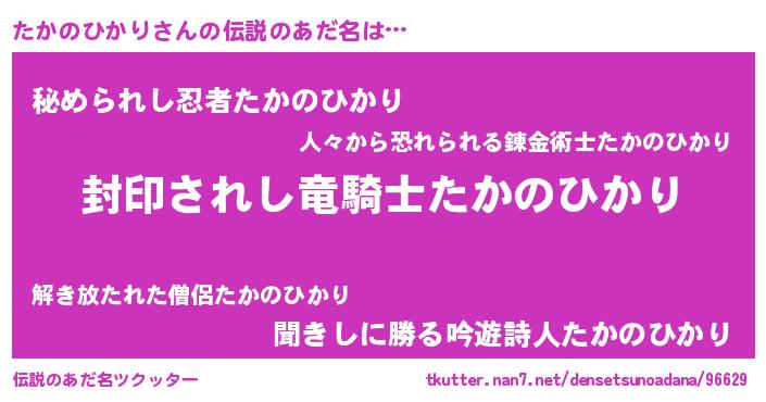 | 胡散臭い通販商品みたいなあだ名 | 『億万長者になれるブレスレット…その名も「たかのひかり」』 |