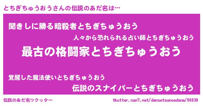 | 男性向けラノベタイトル風あだ名 | 『魔弾の王ととちぎちゅうおう』 |