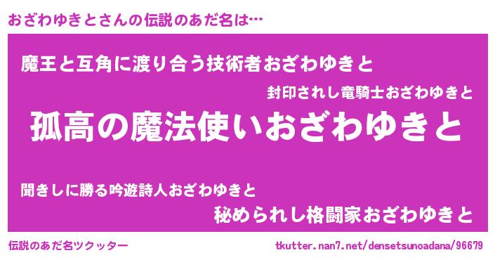 | 男性向けラノベタイトル風あだ名 | 『ダンジョンにおざわゆきとを求めるのは間違っているだろうか』 |