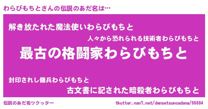| ヒーロー風カッコイイあだ名 | 『仮面ワラダー』『炎刃騎士ワラ』 |