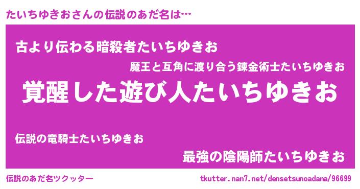 | 男性向けラノベタイトル風あだ名 | 『うちのたいちゆきおが世界を掌握している!』 |
