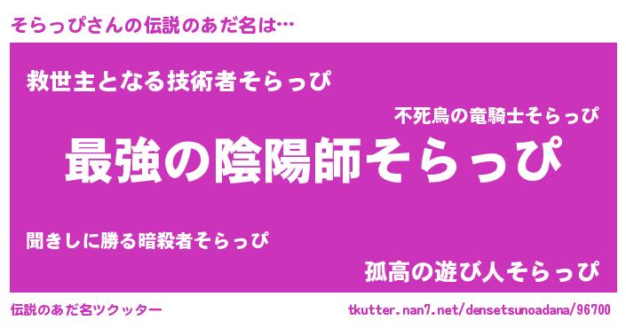 | ヒーロー風カッコイイあだ名 | 『仮面ソラダー』『サイバー戦士ソラッピ』 |