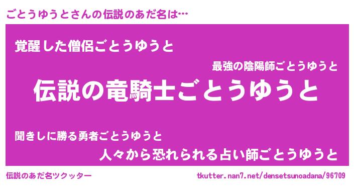 | 男性向けラノベタイトル風あだ名 | 『魔弾の王とごとうゆうと』 |