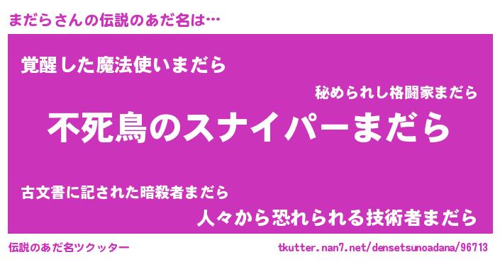 | ヒーロー風カッコイイあだ名 | 『スーパーマダラ』『幻影騎士マダ』 |