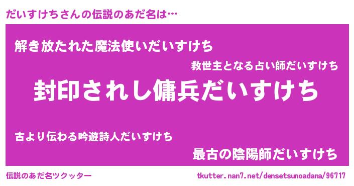 | ヒーロー風カッコイイあだ名 | 『スーパーダイスケチ』『魔戒騎士ダイ』 |
