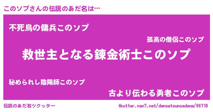 | 男性向けラノベタイトル風あだ名 | 『このソプに滅ぼされるだけの簡単なお仕事です』 |