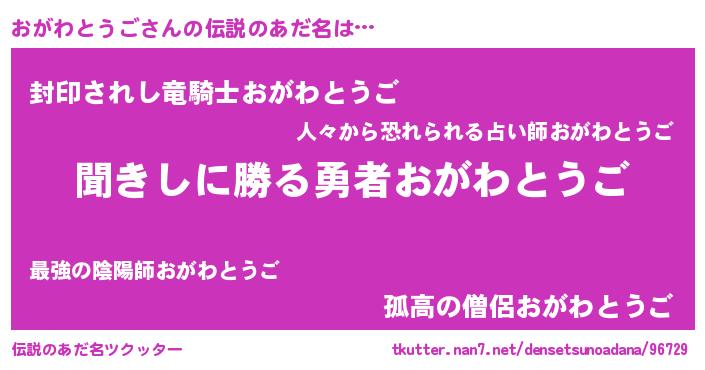 | 意味不明あだ名 | 『永久保存おがわとうご』 |