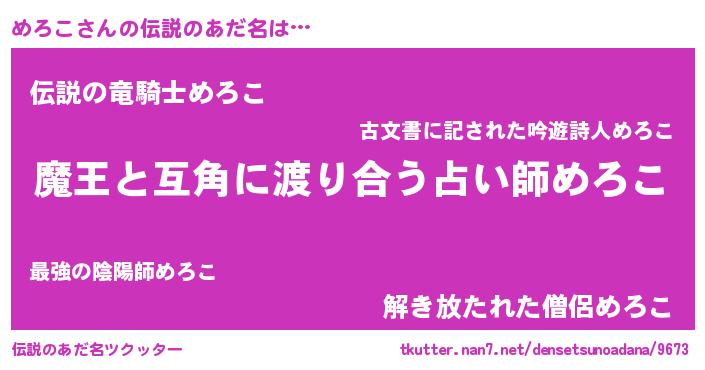 | ヒーロー風カッコイイあだ名 | 『愛の使者めろこ』『スーパーメロコ』 |
