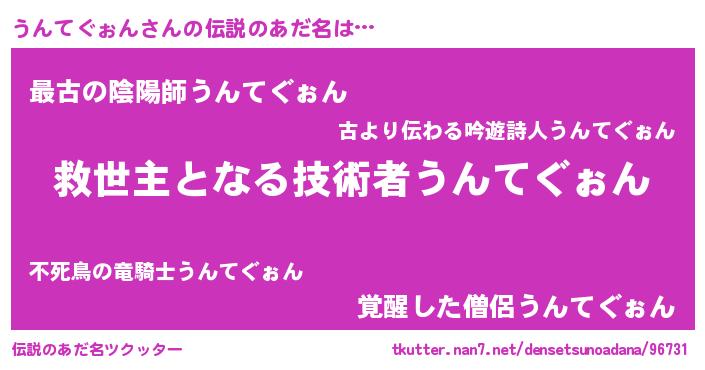 | 意味不明あだ名 | 『住所不定無職うんてぐぉん(9歳)』 |