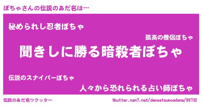 | ヒーロー風カッコイイあだ名 | 『仮面ボチダー』『ネオボチャ』 |