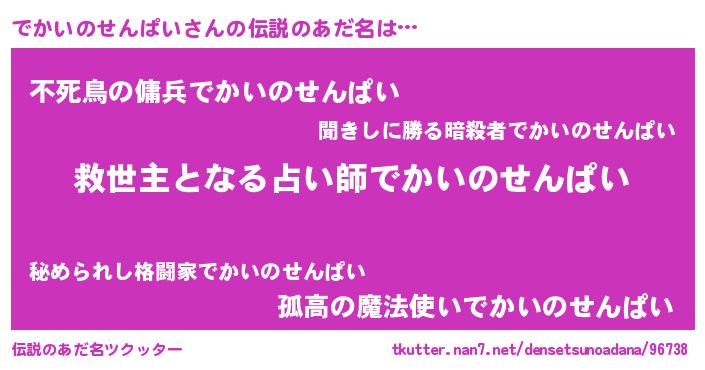 | 意味不明あだ名 | 『住所不定無職でかいのせんぱい(62歳)』 |
