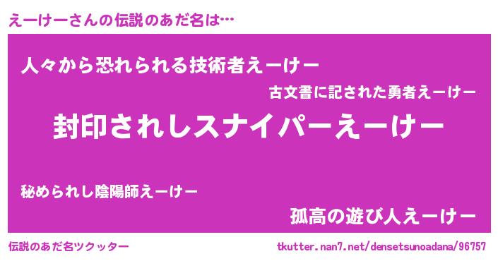 | ヒーロー風カッコイイあだ名 | 『スーパーエーケー』『仮面エーダー』 |