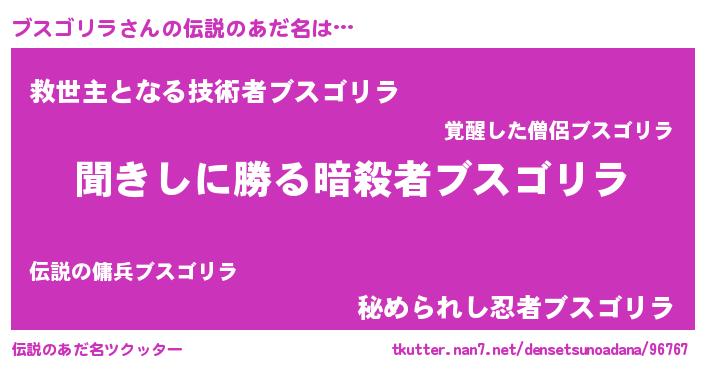| ヒーロー風カッコイイあだ名 | 『ウルトラ戦士ブスゴリラ』 |