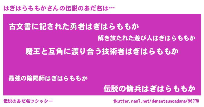 | 料理風あだ名 | 『はぎはらももかごはん』 |