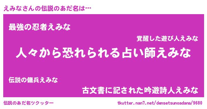 | ヒーロー風カッコイイあだ名 | 『正義の使者えみな』『究極戦士エミナ』 |