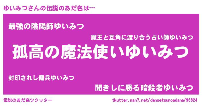 | ヒーロー風カッコイイあだ名 | 『暗黒騎士ユイ』『最強戦士ユイミツ』 |