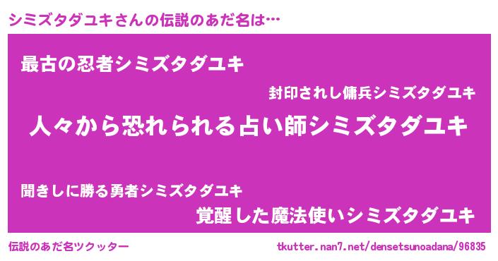 | 男性向けラノベタイトル風あだ名 | 『シミズタダユキスレイヤー』 |