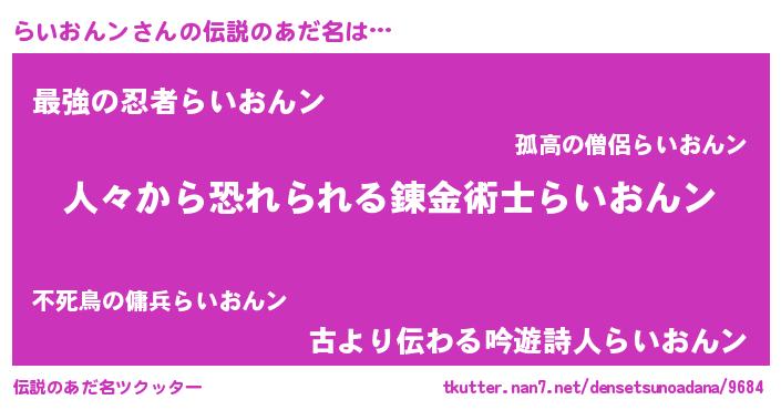 | 意味不明あだ名 | 『住所不定無職らいおんン(74歳)』 |
