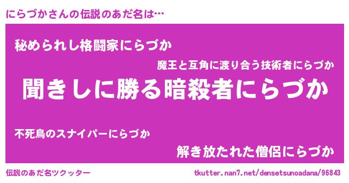 | 意味不明あだ名 | 『永久保存にらづか』 |