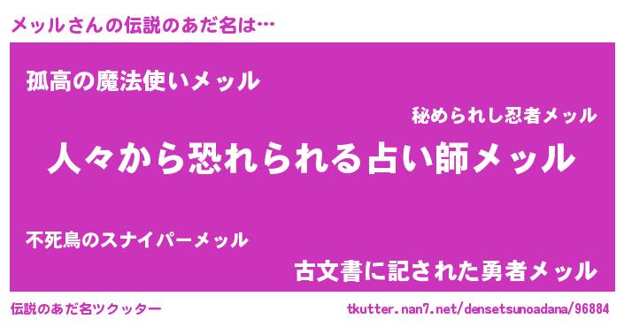 | ヒーロー風カッコイイあだ名 | 『仮面メッダー』『正義の使者メッル』 |