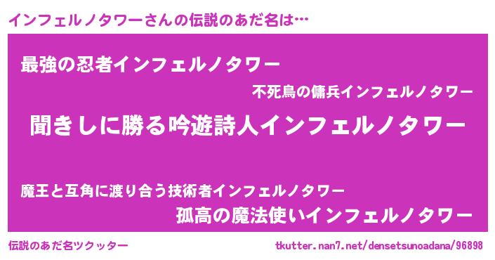 | 意味不明あだ名 | 『永久保存インフェルノタワー』 |