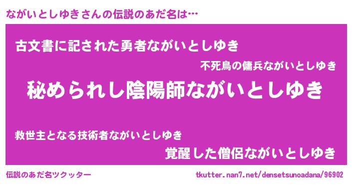 | 男性向けラノベタイトル風あだ名 | 『やはりながいとしゆきの青春ラブコメはまちがっている 』 |