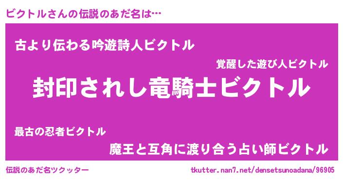 | ヒーロー風カッコイイあだ名 | 『最強戦士ビクトル』『スーパービクトル』 |