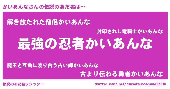 | 意味不明あだ名 | 『かいあんなフォーエバー』 |