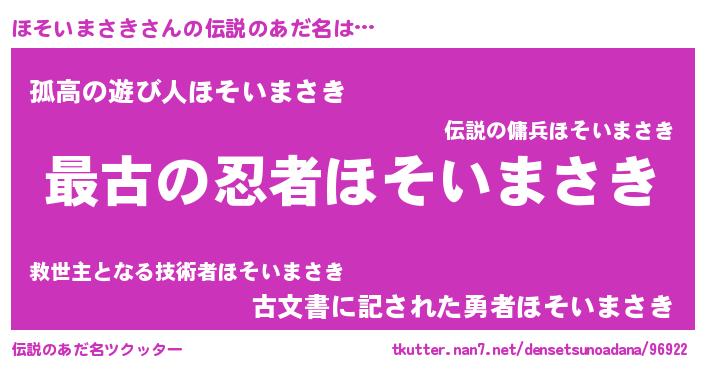 | ヒーロー風カッコイイあだ名 | 『仮面ホソダー』『炎刃騎士ホソ』 |