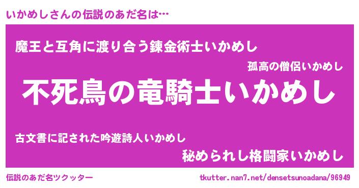| 女子向けラノベタイトル風あだ名 | 『闇のいかめし』『死神いかめしの再婚』 |