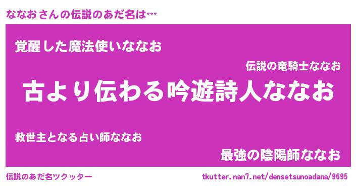 | 女子向けラノベタイトル風あだ名 | 『ななおアンティーク』 |