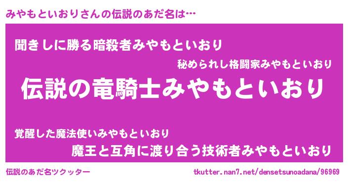 | ヘコむあだ名 | 『みやにー』『みやもといおり(爆)』 |