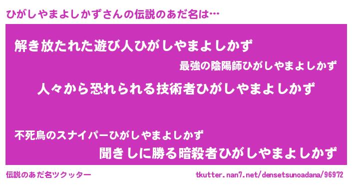 | ヘコむあだ名 | 『ひがを』『ひがしやまよしかず(震え声)』 |