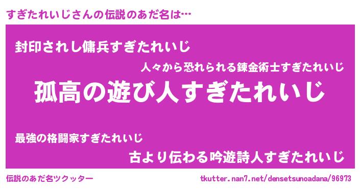 | 胡散臭い通販商品みたいなあだ名 | 『信頼と実績のペンダント…その名も「すぎたれいじ」』 |