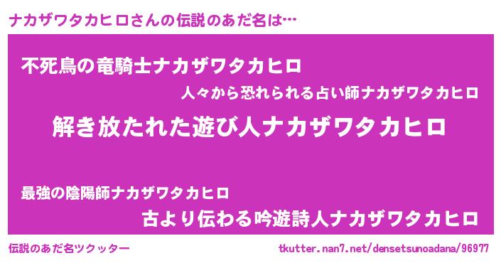 | 意味不明あだ名 | 『とにかく怪しいナカザワタカヒロ』 |