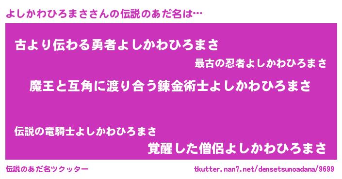 | 意味不明あだ名 | 『自称よしかわひろまさ』 |