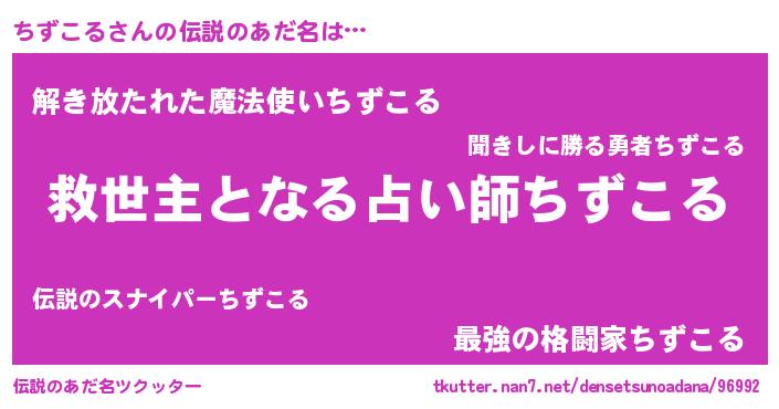 | ヒーロー風カッコイイあだ名 | 『仮面チズダー』『愛の使者ちずこる』 |