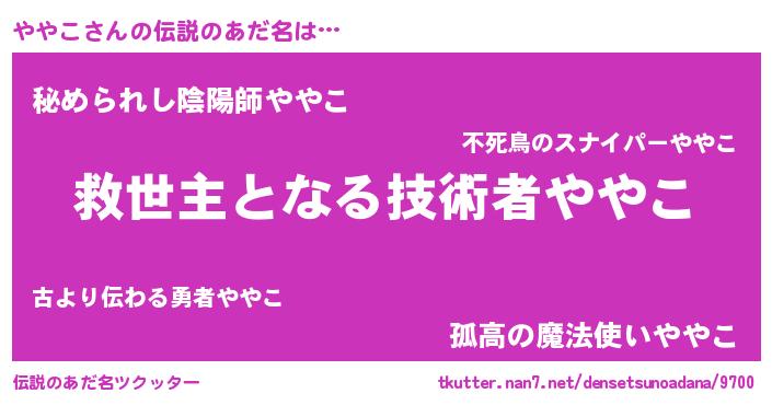 | ヒーロー風カッコイイあだ名 | 『仮面ヤヤダー』『サイバー戦士ヤヤコ』 |