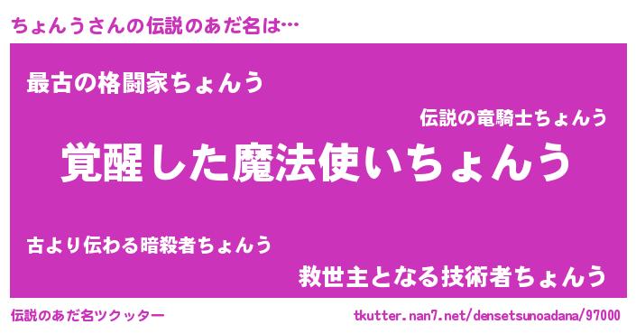 | ヒーロー風カッコイイあだ名 | 『炎刃騎士チョ』『仮面チョダー』 |