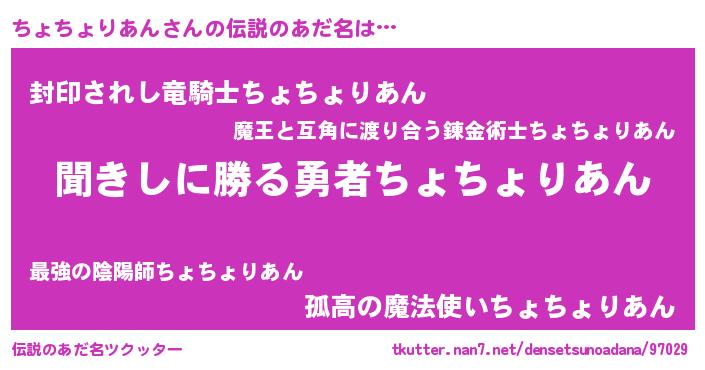 | 胡散臭い通販商品みたいなあだ名 | 『絶対に幸福をもたらす水素水…その名も「ちょちょりあん」』 |