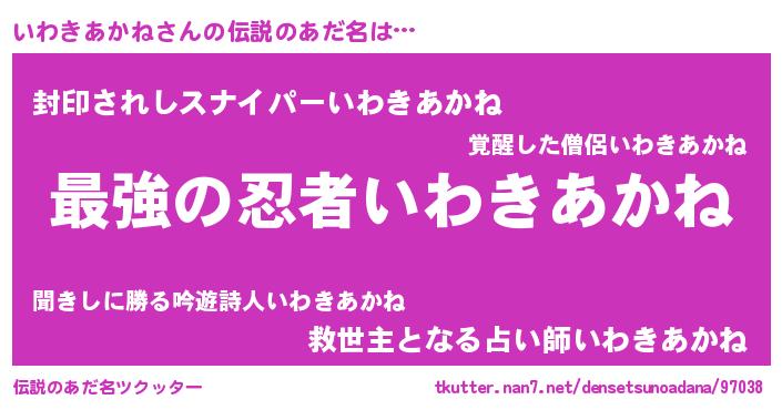 | 意味不明あだ名 | 『自称いわきあかね』 |