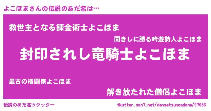 | 男性向けラノベタイトル風あだ名 | 『うちのよこほまが世界を掌握している!』 |