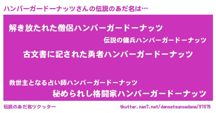 | 欧米人風あだ名 | 『ダレノガレハンバーガードーナッツ』 |