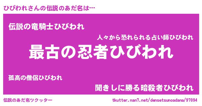 | ヒーロー風カッコイイあだ名 | 『仮面ヒビダー』『ウルトラひびわれマン』 |