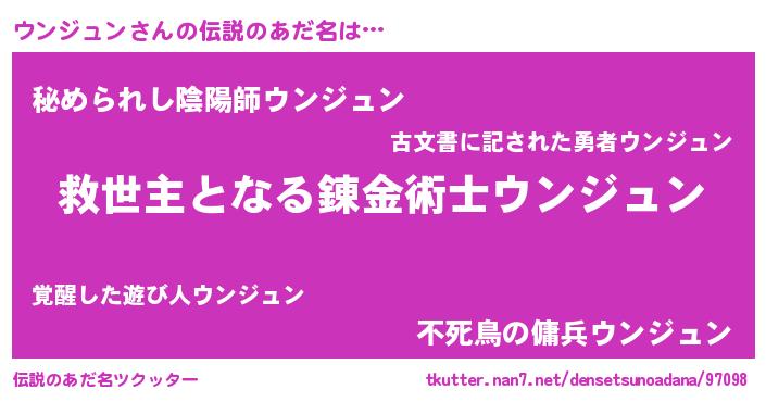 | ヒーロー風カッコイイあだ名 | 『天空の使者ウンジュン』『仮面ウンダー』 |