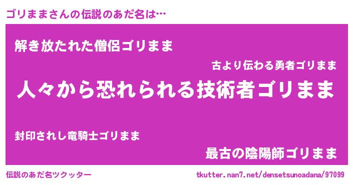 | ヒーロー風カッコイイあだ名 | 『ウルトラ戦士ゴリママ』『幻影騎士ゴリ』 |